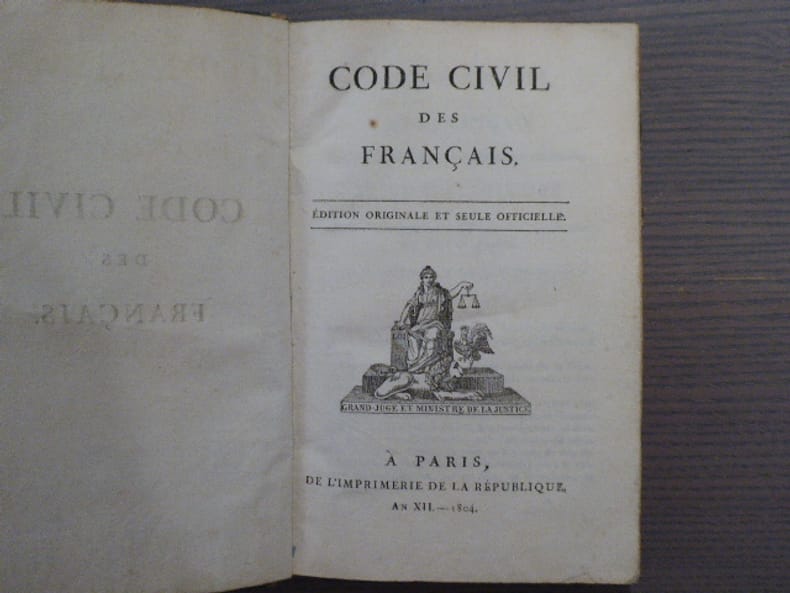 De L Imprimerie De La Republique Paris An XII, 1804 In-8 ( 200 X 130 mm ) de ( 2 ) ff. ( faux-titre, page de titre "à la vignette du Grand Juge et Ministre de la Justice" ), 436 pages, demi vélin nacré, dos lisse avec titre manuscrit à l'encre ( Reliure de l'époque ). Plats frottés, anciennes annotations manuscrites marginales à l'encre sur 2 feuillets, bon exemplaire de cette rare édition originale.
