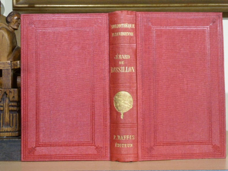 P. Jannet - "Bibliothèque Elzevirienne"- P. Daffis - Pagnerre Paris 1856 In-12 ( 165 X 105 mm ) de XIX-403 pages + 48 pages de catalogue, pleine percaline rouge, dos lisse titré en lettres dorées et orné de la sphère elzévirienne dorée, plats ornés de filets d'encadrement et de fleurons d'angles à froid. Belle édition imprimée sur beau papier, volume non rogné. Bel exemplaire.BIBLIOTHEQUE ELZEVIRIENNE: Cette collection est un véritable monument de l'histoire de la librairie française.La collection complète ( 173 volumes ) est extrêmement difficile à constituer.Les textes qui la composent sont des ouvrages ou des manuscrits inédits ou très rares des XVe et XVIe siècles et par exception de quelques autres postérieurs au XVIIIe. Ces ouvrages contiennent les commentaires des plus grands érudits de l'époque.L'éditeur Pierre JANNET n'a reculé devant aucun sacrifice pour lancer sa collection.Ces jolies reliures en toile rouge à la manière anglaise ornées d'un globe doré feront le reste pour assurer la renommée de la Bibliothèque Elzévirienne.