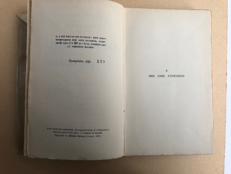 Grasset, 1931. In-8 broché, couverture imprimée, 251 pages et 2 feuillets non chiffrés.