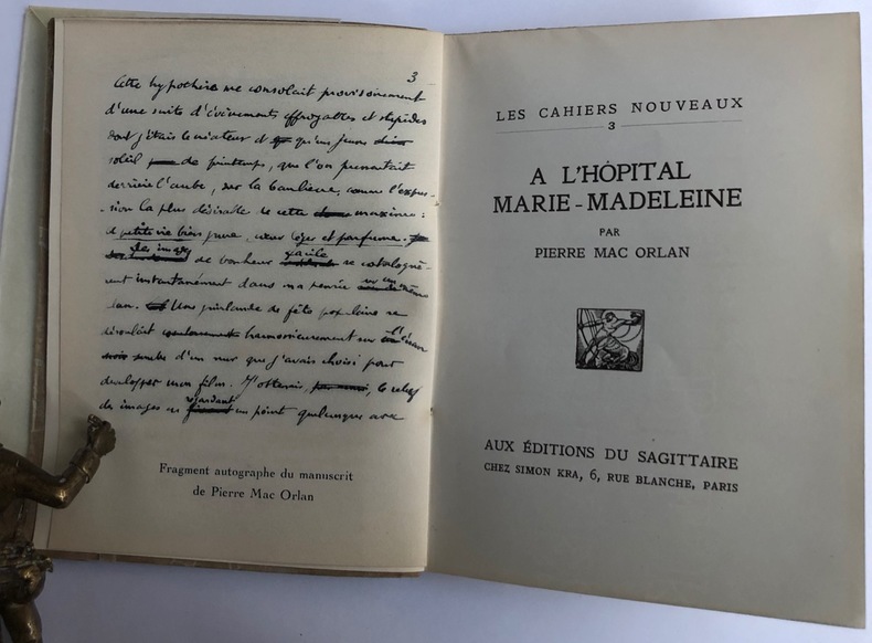 Paris : Aux Editions du Sagittaire / Simon Kra (Collection Les Cahiers Nouveaux 3), 1924. Un volume broché (12x15,7 cm), 103 pages. Edition originale : un des 700 exemplaire sur vélin de Rives non justifié. Pliures au dos sinon bon état.