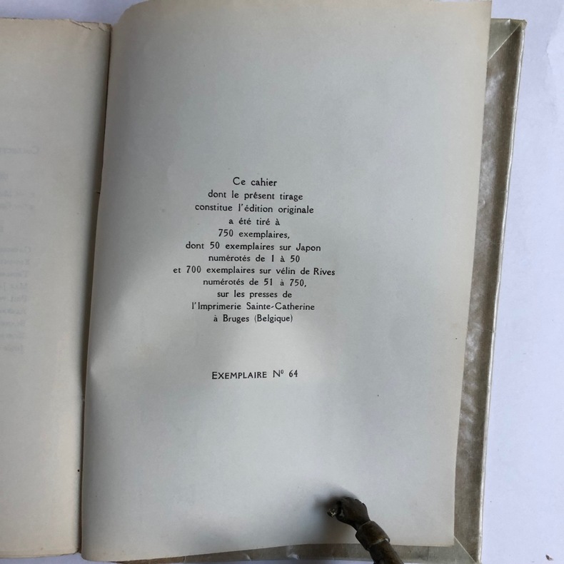 Edition originale tirée à 750 exemplaires ; un des 700 sur vélin de Rives . Fac - similé du manuscrit en frontispice .
