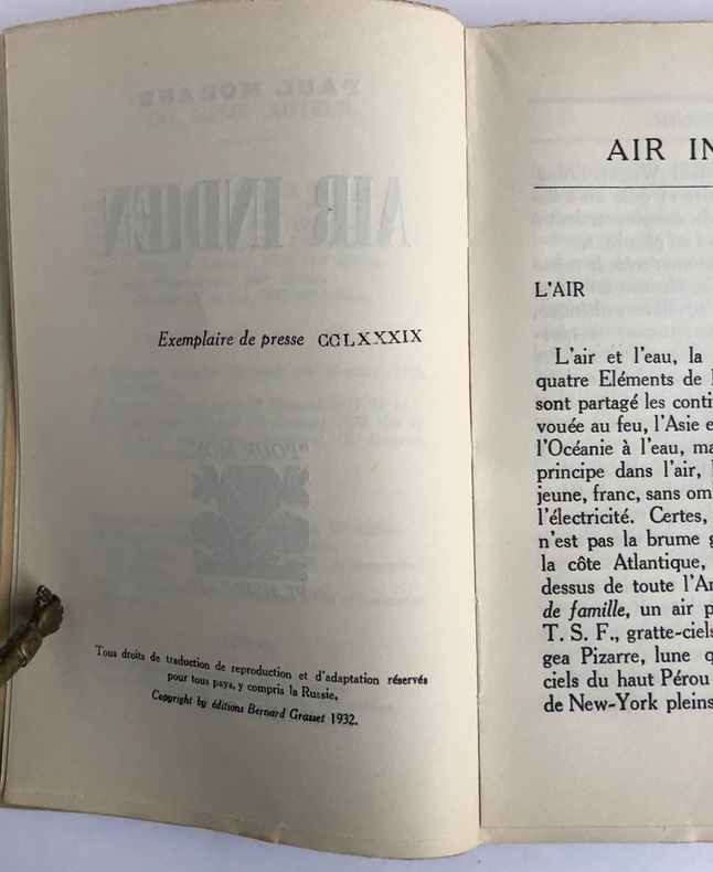 Édition originale. Exemplaire de presse sur Alfax Navarre, numéroté CXCVII. Envoi autographe de Paul Morand "à Madame Paul Dupuy, from the Andes to U.S.A. by air with best regards from P. Morand". De la bibliothèque de Jean-Berenger de Nattes, avec ex-libris.