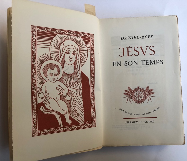 LIBRAIRIE A. FAYARD. 1945. In-8. Broché. Etat d'usage, Couv. défraîchie, Dos fané, Quelques rousseurs. 389 pages - Bandeaux lettrines et culs de lampes bois gravés monochromes - frontispice monochrome. . . . Classification Dewey : 232-Jésus Christ