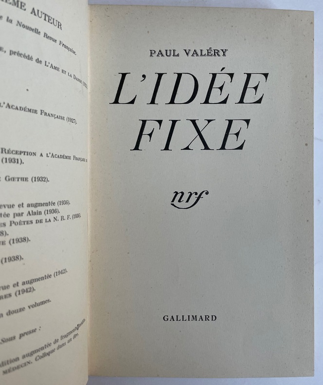 Nrf Gallimard Paris 1946 VALERY (Paul) L'idée fixe. nrf Gallimard. Paris. 1946. In-12 (19/12 cm). 163 pages.