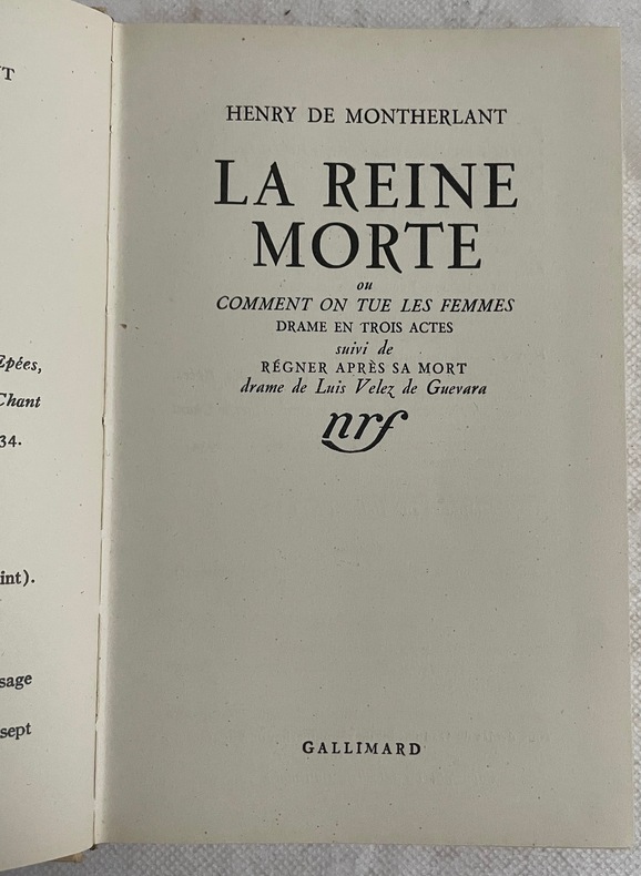 Paris Gallimard 1944. In-12 °, cartonnage de l'éditeur. Achevé d'imprimer le 17 mars1944 et non daté au pied du dos.