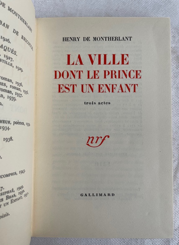 Paris Gallimard 1951. In-12 °, cartonnage de l'éditeur. Achevé d'imprimer en octobre 1951 et daté 1951 au pied du dos. Edition Originale
