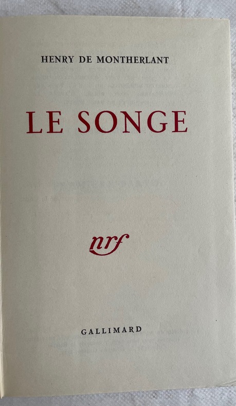 ed. de Minuit 1982 et 1990 Monsieur Songe, ed. de Minuit, 1982, in-12 br., « Pendant une vingtaine d’annees je me suis delasse de mon travail en ecrivaillant les histoire de monsieur Songe. Les voici reunies et mises au point en un volume qui est, je le repete, un divertissement ». 1er mille, envoi, Du nerf, ed. de Minuit, 1990, in-12 br. etroit, où l’on retrouve Monsieur Songe.. ça se finit comme ça : « On ne connait pas la decision de monsieur Songe mais on espere qu’il finira paisiblement », 1er mille, envoi, les deux volumes
