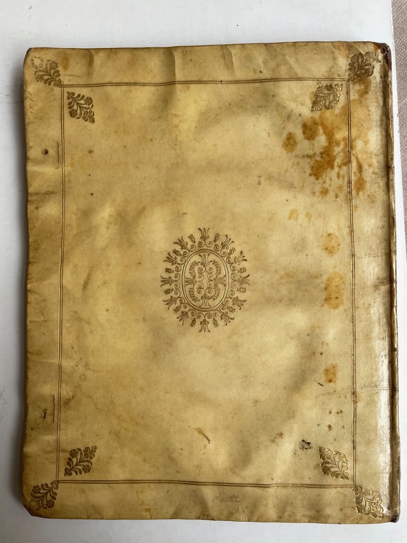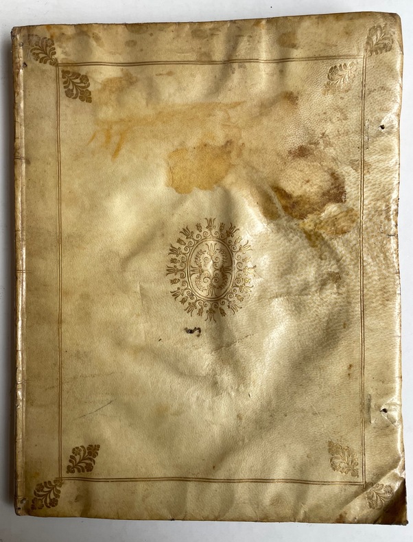 Verona: [s.e.], 1619. Vol. in 4to Cinquante feuillets gravés : texte et planches. Belle reliure de vélin doré, tranches dorées.