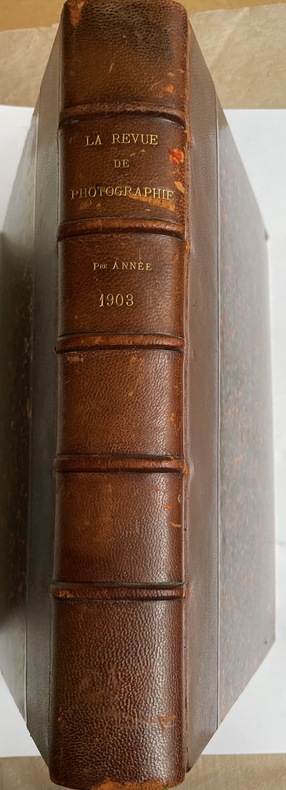 Paris Photo-Club de Paris 1903-1907 59 vol. broché 59 (sur 60) fascicules in-4, brochés, couv. illustrées, pagination continue par année, nombreuses photographies en noir dans le texte et 177 (sur 180) hors-texte. Tête de série de cette belle revue de photographie, parmi les plus luxueuses de la presse spécialisée de l'époque, qui fait suite au Bulletin du Photo-Club de Paris et paraîtra jusqu'en 1908. Manque le n° 10 (1907, 5e année). Tous les numéros sont complets des hors-texte, la plupart contrecollés sous serpente, y compris le tirage en trichromie du dernier numéro de 1906. Quelques couvertures avec des rousseurs ou de petites mouillures marginales (fortes à 5 numéros de 1905), quelques dos fendillés aux derniers fascicules. Sinon bon exemplaire de cette publication peu courante.