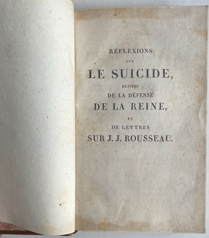 1ère édition française ( Edition Originale parue en 1813 à Londres pour Réflexions sur le suicide) Escofffier 237