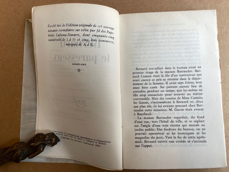 Paris, Gallimard, 17 janvier 1952. In-12, broché, non coupé, 316 pp.