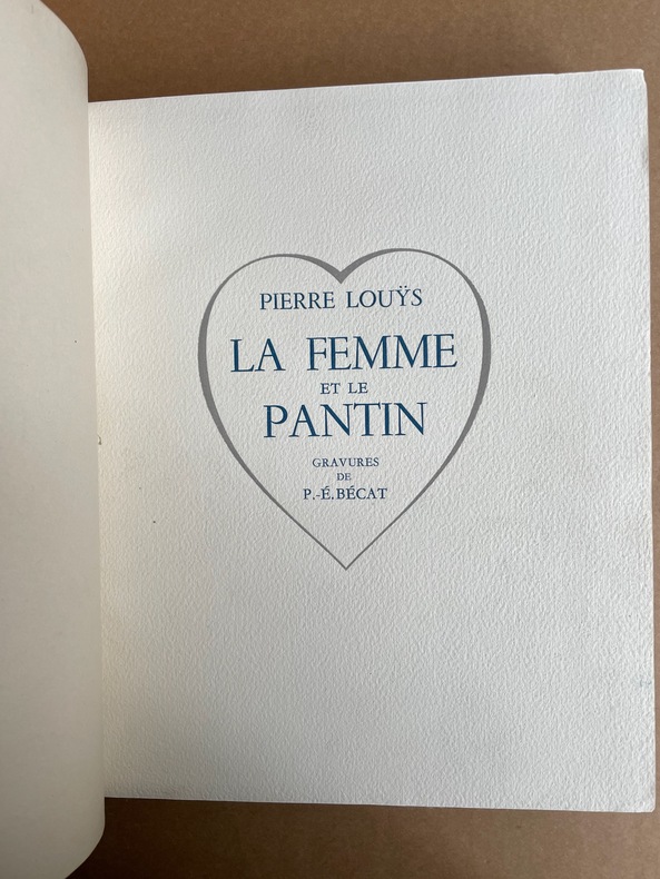 Louis Pierre. Becat La femme et le pantin. In English (ask us if in doubt)/Louys Pierre. Becat La femme et le pantin. Gravures originales de Paul-Emile Becat. Paris. Le Vasseur et Cie editeurs. 1950.A.D. 206. SKUalb4b0389d287c77666.