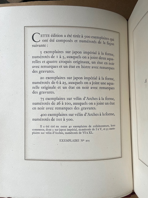 Illustré de 20 eaux-forte originales dont 4 H.T. de Paul Emile Bécat. Tirage limité à 500 exemplaires, un des 400 sur vélin d'Arches.