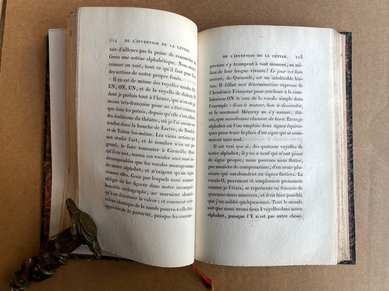 Édition originale. Dans sa préface, Nodier dédie cet essai au typographe Georges-Adrien Crapelet, l'imprimeur de ce livre et l'auteur de laphorisme "Un livre sans faute est une chimère". Bel exemplaire dans une fine reliure signée.