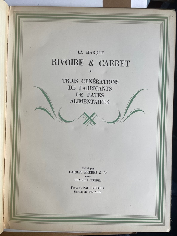 Grâce au texte de Paul REBOUX et aux dessins de DECARIS, encadrés en vert, nous suivons à travers l'usine, la fabrication du macaroni, des pâtes et vermicelles jusqu'à leur emballage et expédition de cette marque de grande renommée. Petites usures et marques.