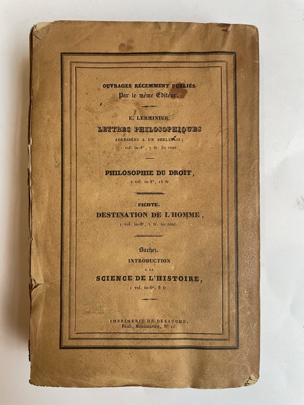 Paris, Johanneau, 1829 ; in-8° broché, couverture crème imprimée en noir avec encadrement typographique sur les 2 plats et vignette au 2ème plat; ( 4), XV, 358, (2)pp.Très rares piqûres, exemplaire non rogné dans son brochage originel de parution ( couverture très légèrement poussiéreuse avec très petite déchirure , de 1 cm, au 2ème plat, sans manque).