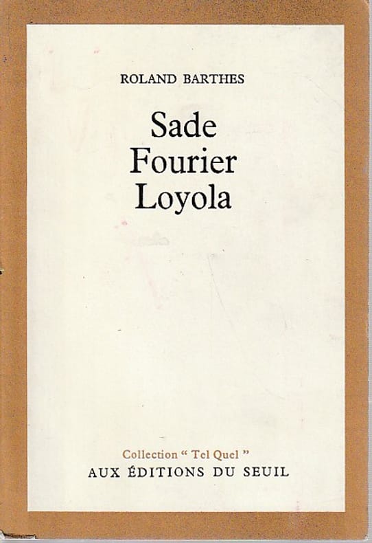 Coll. "Tel Quel", Paris, Seuil, 1971, in-8, br., 192 pp., bande de lancement éditeur, Table des matières, Biographie de trois fondateurs de langues : Sade, langue du plaisir érotique - Fourier, langue du bonheur social - Loyola, langue de l'interpellation divine. Très bon état