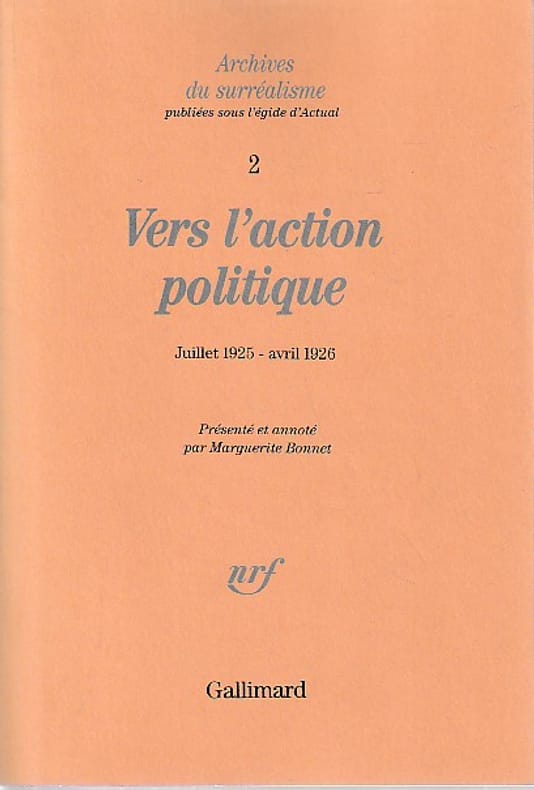 Paris, NRF / Gallimard, 1988 - in-8 broché, 167 pages - Les "Archives du surréalisme" ont été publiées sous l'égide de l'association Actual, ce volume a été présenté et annoté par Marguerite Bonnet - Bon état, couv. légèrement salie, intérieur impeccable