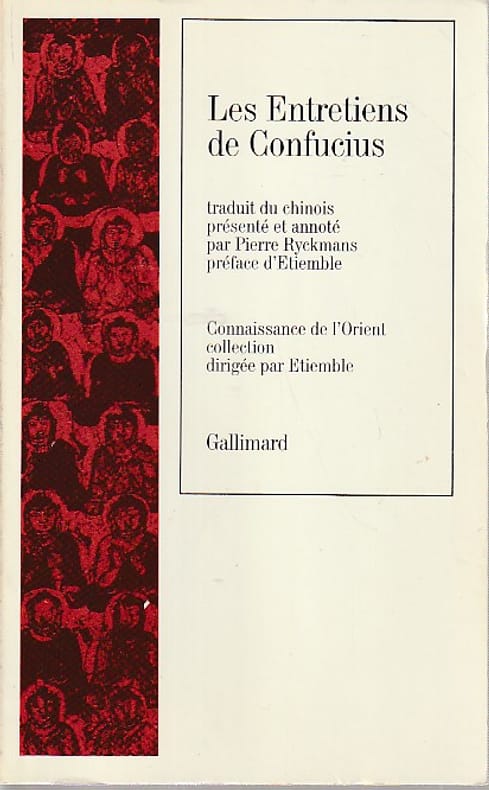 Traduit du chinois présenté et annoté par Pierre Ryckmans, préface d'Etiemble, Gallimard, Connaissance de l'orient, 1987, 168 pp., broché, traces d'usage, état correct.