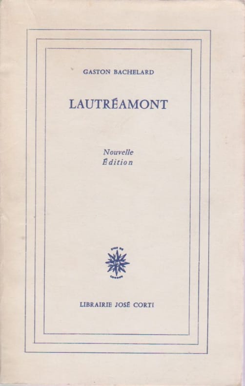Paris, Librairie José Conti, 1939. Édition originale sur papier courant. In-12 broché, 188 x 122 mm, 200 pp. plus une p. de table des matières non paginée à la fin. Plats protégés par un papier de soie remplié. Signé à la plume par Bachelard sur la première garde blanche. "À Louis C[?], en amical souvenir, Bachelard". Essai en cinq chapitres sur l'auteur des Chants de Maldoror: I) Agression et poésie nerveuse, II) Le bestiaire de Lautréamont, III) La violence humaine et les complexes de la culture, IV) Le problème de la biographie, V) Le complexe de Lautréamont. Avant de fasciner les surréalistes, Lautréamont a retenu l'attention de figures aussi diverses que Léon Bloy ou Savitri Devi. Quoi de surprenant qu'il ait aussi capté celle de Bachelard ? "En suivant notre interprétation non-lautréamontienne du lautréamontisme, on perdra sans doute tous les bonheurs de la colère ; on gardera tous les charmes de la vivacité. De toute manière, un lecteur des Chants de Maldoror qui aura vécu une fois sous la forme nerveuse la poésie de l'agression n'oubliera jamais sa vertu tonifiante. Lautréamont place la poésie dans les centres nerveux. Il projette, sans intermédiaire, la poésie. Il se sert du présent des mots."