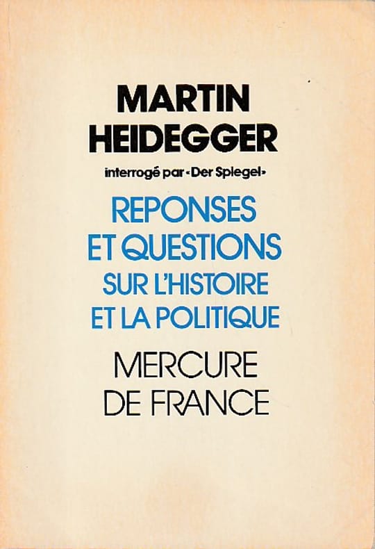 Martin Heidegger interrogé par "Der Spiegel", Mercure de France, 1977, 81 pp., broché, couverture un peu jaunie, traces d'usage, rares annotations au crayon, état correct.