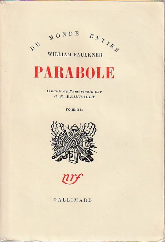 Edition originale de la traduction française. Un des 70 exemplaires numérotés du tirage sur vélin pur-fil Lafuma-Navarre (seul papier). L'exemplaire a conservé de grandes marges. ''Les critiques ont compris dès sa parution que cette œuvre constituait l'effort le plus ambitieux de son auteur. En octobre 1948, Faulkner notait à propos de Parabole : «C'est l'histoire du Christ dans l'armée française, un caporal et une escouade de douze hommes, un général qui est l'Antéchrist, et qui l'attire au sommet d'une colline pour lui offrir le monde. Symbolique et irréel... Le corps du caporal est choisi pour celui du soldat inconnu. Le Christ revit dans la foule.» Parabole est une métaphore : «Quand le dernier glas du destin aura sonné et disparu du dernier et dérisoire rocher suspendu inamovible dans le dernier couchant rouge», disait Faulkner en parlant de l'homme, «il y aura quand même un bruit, un seul : celui de sa petite et inépuisable voix, parlant encore.» Faulkner tente ici l'impossible : élever cette «petite voix» de l'écrivain perdu dans un siècle d'aliénation à la puissance des grandes orgues de l'humanisme.'' Dos et marge des plats insolés. Plats présentant par ailleurs quelques rousseurs. Du reste, belle condition.