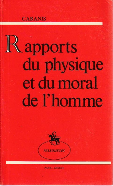 ----- EDITION ORIGINALE ---- "CABANIS' fundamental philosophical work, Rapports du physique et du moral de l'homme, is presented as "simple physiological researches". It is composed of twelve Mémoires... In this work Cabanis sets forth a psychology and an ethical system based on the necessary effects of an animal's organization upon its relationships with its environment... Sensation, he contended, cannot be studied in isolation from organic needs and from sensibility (in the physiological sense of the term) in its relations to motor irritability. As a physician, Cabanis considered, in the seventh memoir of the Rapports, the influence of illnesses on the formation of ideas and values. The text is a summary of his physiological and medical conceptions... It helps us to understand the importance he attributed, from a moral and social point of view, to perfecting the art of medicine...". (DSB III) ---- Zilboorg pp. 283/284 - Postel & Quetel**998/H4