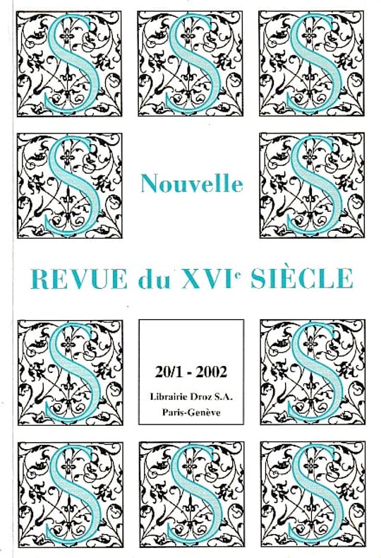 Droz, Nouvelle revue du XVIe siècle N° 20 - 2002/1, avril 2002, 132 pp., broché, très bon état.