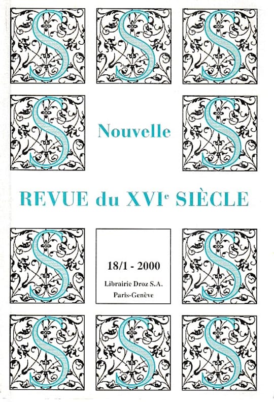 Droz, Nouvelle revue du XVIe siècle N° 18, 2000/1, juin 2000, 191 pp., broché, très bon état.