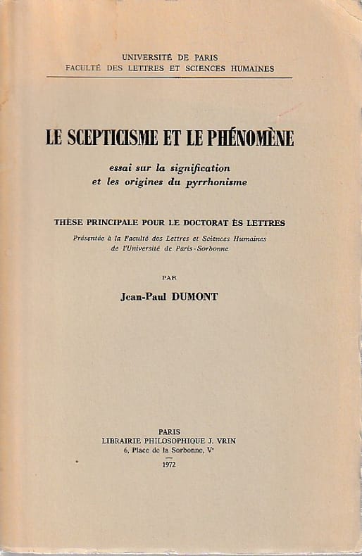 Paris, Librairie Philosophique J. Vrin 1972, 240x155mm, 256pages, broché. Etiquette de cotation sur le bas de la page de garde supérieure, autrement bel exemplaire.