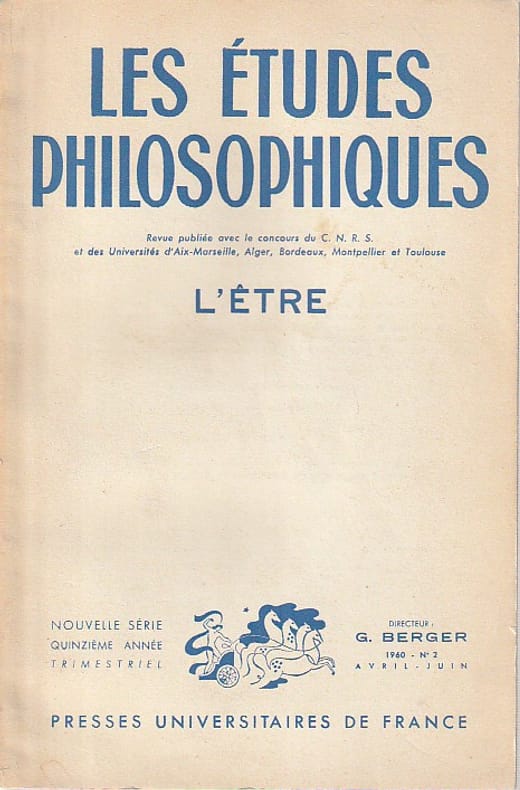 Presses Universitaires de France, revue "Les Etudes Philosophiques" n° 2, avril - juin 1960, broché, traces d'usage, tranches brunies, couverture et dos partiellement brunis, état correct.