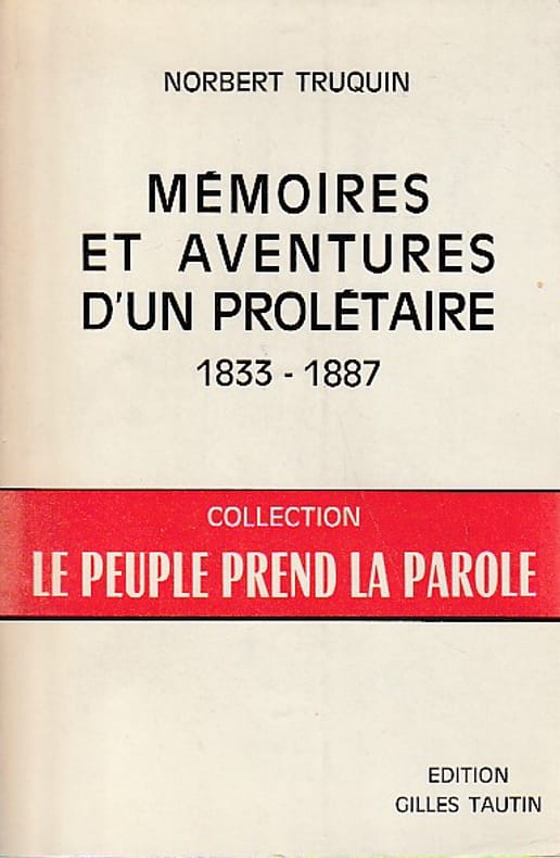 Paris, Gilles Tautin, 1974, br., 66 p. Coll. Le peuple prend la parole Texte abrégé et présenté par Paule Lejeune. L'éd. intégrale a paru sous le titre : "Mémoires et aventures d'un prolétaire à travers la révolution". Etat correct : plats et gouttière piquées et tachées, intérieur propre.