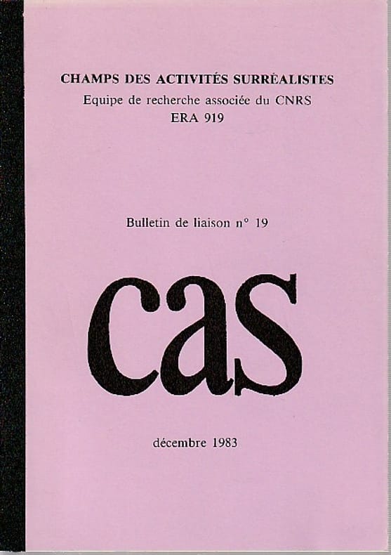 Champs des activités surréalistes, n° 19, décembre 1983, 135 pp. broché, couverture partiellement insolée, bon état.