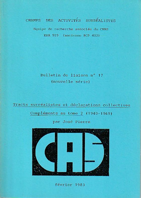 Champs des activités surréalistes, n° 17, février 1983, 145 pp. broché, couverture partiellement insolée, bon état.