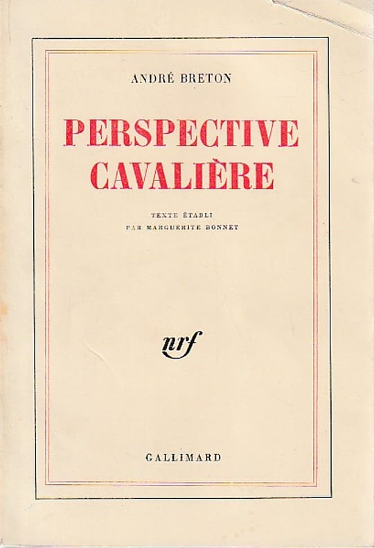 BRETON (André)Perspective cavalièreGallimard, Paris, 1970. 1 volume. In-8°. 245 pp. Couverture imprimée à rabats. ÉDITION ORIGINALE. Un des 56 exemplaires numérotés sur vélin pur fil Lafuma-NavarreTrès bel exemplaire bien frais