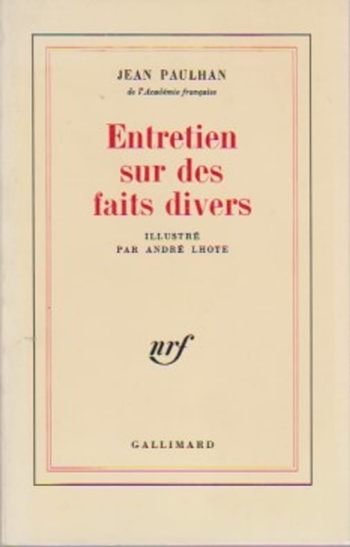 Éd. orig., un des 1000 ex. num. sur alfama, (n°863). On lit au dos : "Nouveaux entretiens sur des faits divers" . Dessins en noir dans et hors-texte par André Lhote. (Huret, 402).