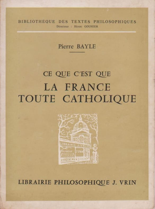 1 vol. fort in-folio reliure de l'époque pleine basane marron, dos à 6 nerfs orné, Chez >P. Husson, T. Johnson, P. Gosse, J. Swart, H. Scheurleer, J. Van Duren, R. Alberts, C. Le Vier, F. Boucquet, A La Haye, 1727, 12 ff. et 902 pp. Titre : Oeuvres Diverses de Mr. Pierre Bayle, contenant tout ce que cet auteur a publié sur des matières de Théologie, de Philosophie, de Critique, d'Histoire et de Littérature, excepté son Dictionnaire historique et critique. Tome Second [ Contient notamment : ] Critique Générale de l'Histoire du Calvinisme, Nouvelles Lettres critiques sur l'Histoire du Calvinisme, Ce que c'est que la France toute Catholique, sous le Règne de Louis le Grand, Commentaire Philosophique sur ces Paroles de Jésus-Christ, Contrain-les d'entrer ; Avis important aux Réfugiez sur leur prochain retour en France ; La Cabale Chimérique ; La Chimère de la Cabale de Rotterdam ; Avis au Petit Auteur des Petits livrets ; etc...