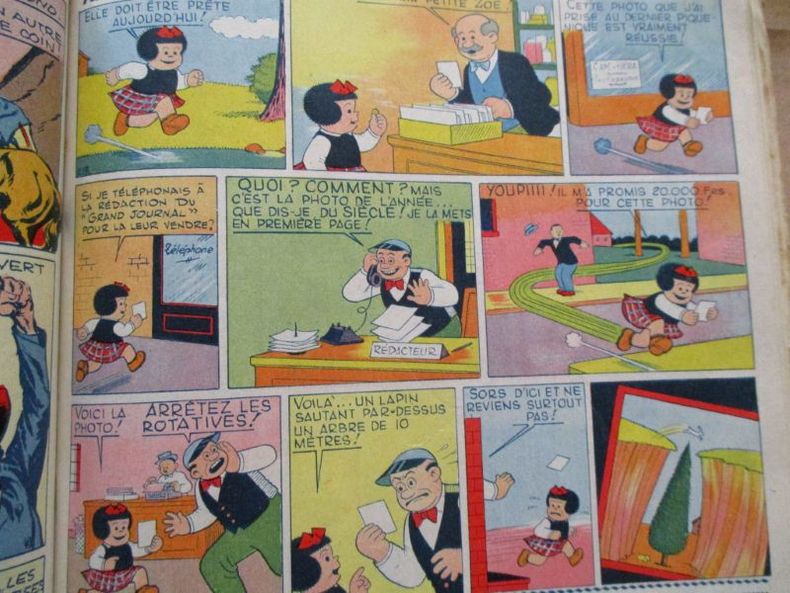 1953 Paris, (Imprimerie Crété), (1953); grand in-8°, plein cartonnage éditeur , illustré d'une grande vignette en cuelurs au 1er plat, dos muet de toile rouge; 24 pages par numéros; Toutes les bandes dessinées sont en couleurs. Cartonage légèrement frotté et un peu poussiéreux, deux noms manusrcits au 1er plat ( discrets).