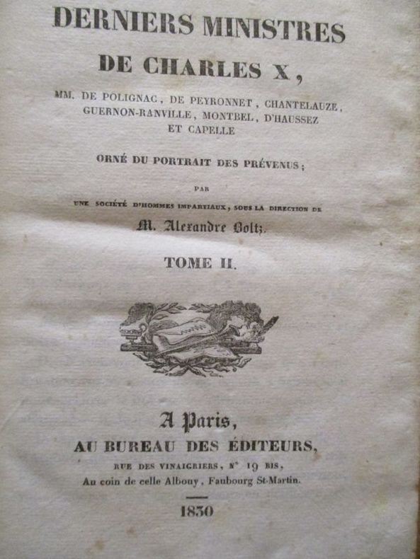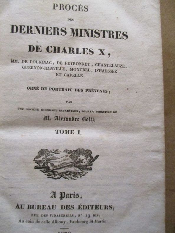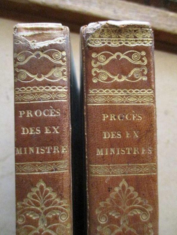 1830 A Paris au bureau des éditeurs rue des vinaigriers 1830 2 volumes In8 demi reliure romantique 400 et 608 pages avec portraits des prévenus