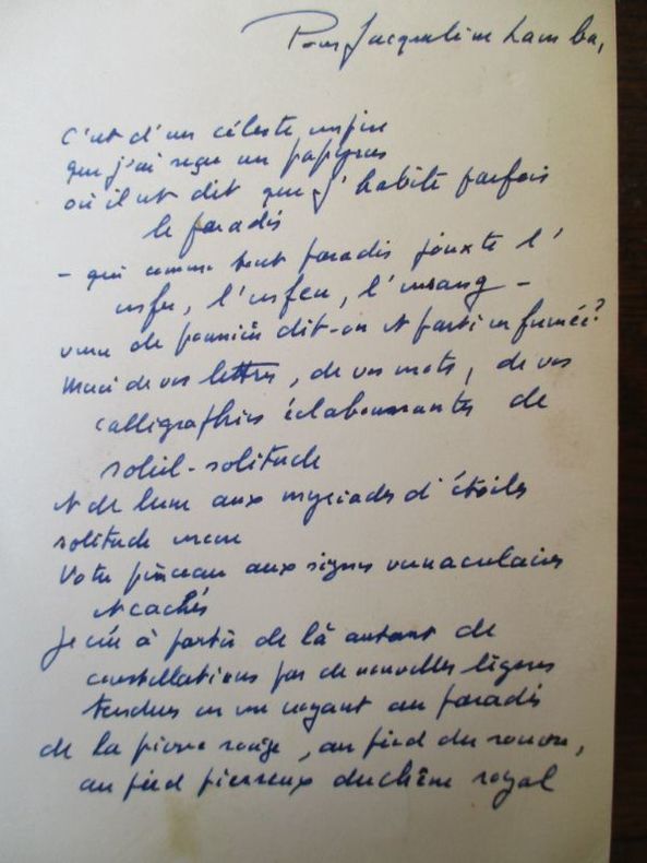 Edition originale pas de tirage sur grands papiersenvoi et poeme joint à Jacqueline lamba (1910-1993) peintre décoratrice et plasticienne seconde épouse d 'André Breton.On Joint du même auteur même format : La Méga-évolution - A 149 - conférence donnée au Palais de la découverte le 22 mars 1969 - 30 pages - édition originale envoi de l auteurles 2 volumes