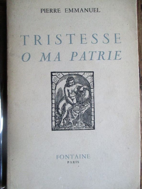 Paris Editions de la revue Fontaine 1942 in 12 (18x12,5) 1 volume broché, couverture à rabats, plat supérieur illustrée d'une vignette en centrale en noir, 122 pages [2]. Achevé d'imprimer à la date du 16 avril 1946. Pierre Emmanuel, pseudonyme de Noël Mathieu, Gan 1916 - Paris 1984, poète et académicien français. Collection ''Fontaine'', sous la direction de Max-Pol Fouchet. Edition originale, celui-ci un des exemplaires numérotés sur vélin LBN Voiron. Bel exemplaire ( Photographies sur demande / We can send pictures of this book on simple request )