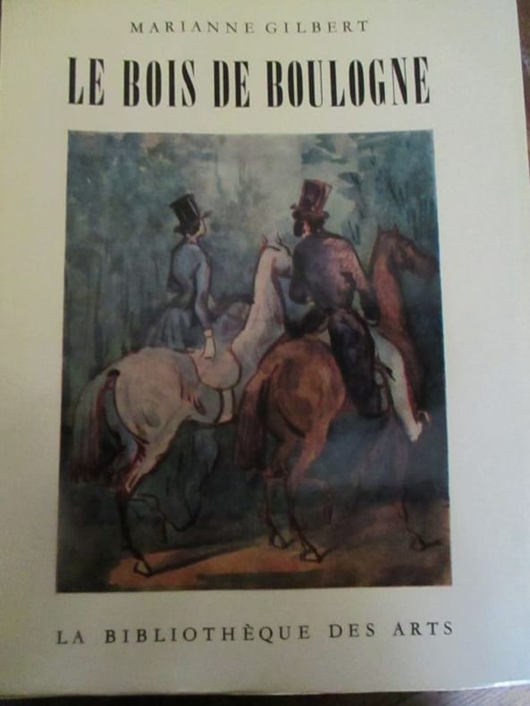 Le Bois de Boulogne à travers les âges, par la baronne Marianne de Goldschmidt-Rothschild, née von Friedlander-Fuld (1894-1973), sous le pseudonyme de Marianne Gilbert avec la collaboration de Annette F. Henrion et Robert Joffet. Textes de Thomas Blaikie, Honoré de Balzac, Daniel Stern, Charles Baudelaire, Émile Zola, Maurice Barrès, Gyp, Henri Lavedan, Marcel Proust et Colette. — "Autrefois, le Bois de Boulogne était une immense forêt, la forêt de Rouvre, qui s'étendait de Clichy à Vincennes, couvrant plusieurs boucles de la Seine et l'emplacement des futurs villages de Chaillot, de Passy et d'Auteuil. L'épaisse sylve n'était traversée que par quelques rares sentiers frayés par les bêtes sauvages qui y vivaient en liberté. Le roi Dagobert y chassa le loup et le sanglier, à l'époque où la forêt n'était habitée que par des bûcherons ; mais bientôt d'autres hôtes moins pacifiques vinrent y chercher refuge. Fuyant Paris qui. ne cessait de s'agrandir et prenait figure de capitale, des brigands s'y établirent rançonnant ou tuant les voyageurs, marchands ou pèlerins. Pour toutes ces raisons, la traversée de la forêt de Rouvre était fort périlleuse et il était dangereux de s'y aventurer seul. Preuve en soit la légende que voici : Lorsque le fils de Louis VII, Philippe-Auguste, répudia brutalement sa femme, la malheureuse Ingeburge de Danemark, le pape s'opposa à un nouveau mariage. Aussi, le roi de France se morfondait dans son palais de la Cité et toute sa cour avec lui. La comtesse de Provence, Béatrice, voulut l'égayer, et elle lui envoya son plus charmant troubadour, Arnaud Catelan, porteur de chansons nouvelles dans le doux parler provençal. Comme il était téméraire de traverser seul la forêt du Rouvre, le roi Philippe envoya une escorte au-devant du poète. Arnaud Catelan était chargé de lourds bagages qui éveillèrent la curiosité des soldats ayant mission de le protéger. Pour le voler, ils l'entrainèrent dans un fourré profond et le tuèrent. Ils éventrèrent les coffres, avides de s'emparer des étoffes précieuses et des bijoux, mais le butin qu'ils espéraient trouver n'était que parfums, fleurs séchées, graines, essences et huilles de Provence. Ils prétendirent, rentrant au Palais, n'avoir pas rencontré le jeune voyageur. Cependant les parfums dont ils étaient imprégnés éveillèrent les soupçons du roi qui entra dans une grande colère, fit pendre tous les coupables et dresser à l'endroit fatal une croix que l'on remplaça au XVIIle siècle. C'est maintenant une petite pyramide où les armes de Provence se distinguent à peine. Cet extrait démontre le grand intérêt de ce livre. Dans la deuxième partie, intitulée « Paysages et Jardins » par Robert Joffet, Conservateur en chef des Jardins de Paris, l'auteur nous rappelle l'existence du « Jardin des Poètes » dont l'entrée donne sur la place de la Porte d'Auteuil. (...) Recommandons à nos lecteurs la lecture du « Bois de Boulogne à travers les âges »; ils y prendront beaucoup d'intérêt. Ajoutons qu'en troisième partie, Marianne Gilbert a choisi une remarquable suite d'illustrations et des textes d'Honoré de Balzac, Daniel Stern (Marie d'Agoult), Charles Baudelaire, Emile Zola, Maurice Barrés, Gyp, Henri Lavedan, Marcel Proust et Colette qui célèbrent le Bois de Boulogne, cette merveille de la nature adaptée par d'habiles architectes de jardins." (Le Sisteron Journal du 22/06/1963)