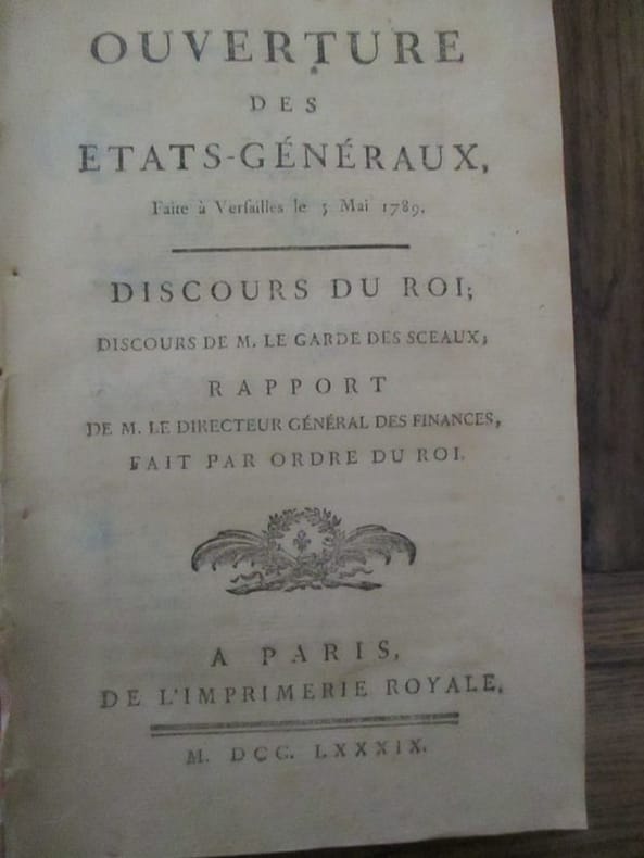 1789 A Paris de l'imprimerie royale 1789 In8 broché 118 pages