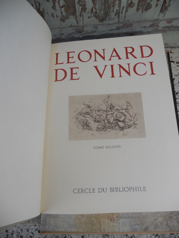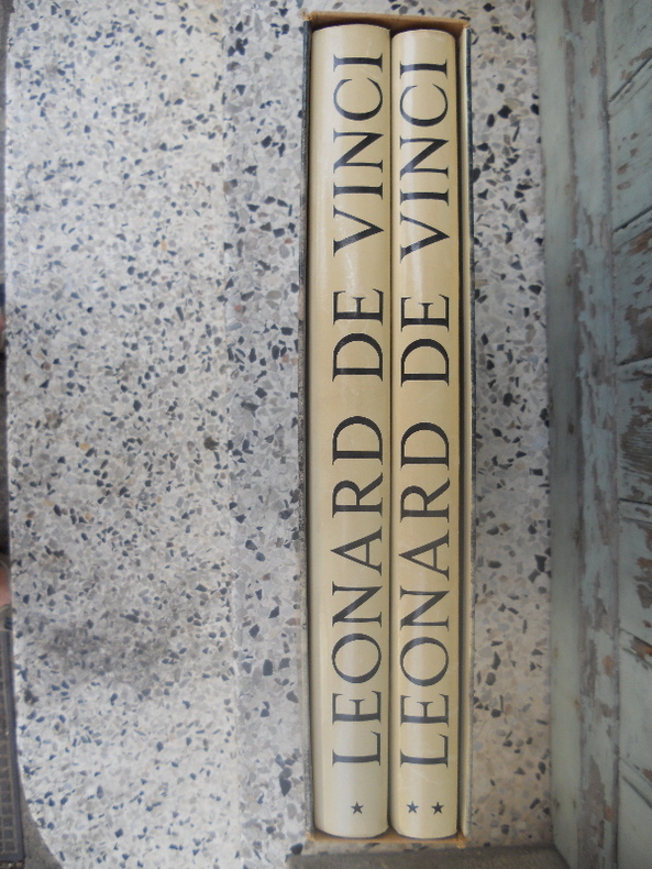 Textes de Costantino Baroni, Ignazio Calvi, Giorgio Nicodemi, Adolfo Venturi, Nello Tarchiani, Alessandro Visconti, Emilio Lavagnino, Diego Valeri, Leopold Mabilleau, Enrico Carusi, Giovanni Gentile, Fausto Bongionami, Pierre Bautier, Tancrede Borenius, Gert Adriani, Umberto Cisotti, Pio Emanuelli, Sebastiano Timpanaro, Augusto Marinoni, Enrico Magni Dufflocq, Gino Chirici, Constantino Baroni, Arturo Ucceli, Ambrogio Annoni, Guglielmo Suida, Francesco Cutry, Sandro Piantanida, Giuseppe Favaro, Filippo Bottazi, Luigi Leinati, G. Panconcelli Calzia, Domenico Argentieri, Felice Biaggi, Antonio Baldacci, Federico Sacco, Carlo Zammattio, Roberto Marcolongo, Giovanni Canestrini, Marco Rosci, Constantino Baroni. Ouvrage comprenant 73 documents biographiques, 16 planches photographiques en couleurs hors texte, 140 reproductions de tableaux, 28 reproductions photographiques de sculptures, 1138 reproductions photographiques en noir de dessins de l'artistes. In fine du second tome, bibliographie et supplement bibliographique, index des auteurs, des documents biographiques, de la table des hors-texte, des tableaux, sculptures et dessins de Leonard de Vinci, et index des ecoles et disciples de l'artiste.