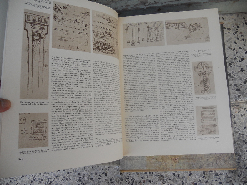 très nombreuses reproductions des manuscrits de Léonard de Vinci avec des dessins en couleurs, quelques photographies en noir et blanc de reconstitutions de machines 1ere traduction en français Contents, Chapitres : Carlo Pedretti : Préface - Alessandro Vezzossi : Engrenages de cosmogonie - Marco Cianchi : Léonard de Vinci et les machines - Machines de guerre - Machines hydrauliques - Machines volantes - La mécanique de Léonard tres legere courbure sans gravité au coin supérieur droit du volume, sinon bon état, intérieur frais et propre