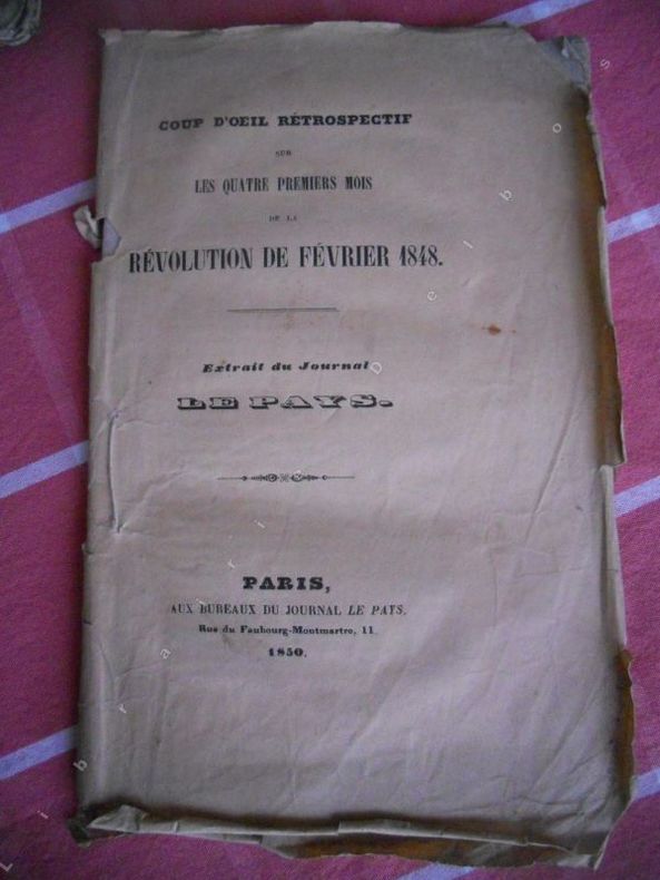 1850. Paris, aux bureaux du journal "Le Pays", 1850. Format 14x22 cm, broche, 56 pages. Couverture defraichie, papier legerement bruni. Etat correct.