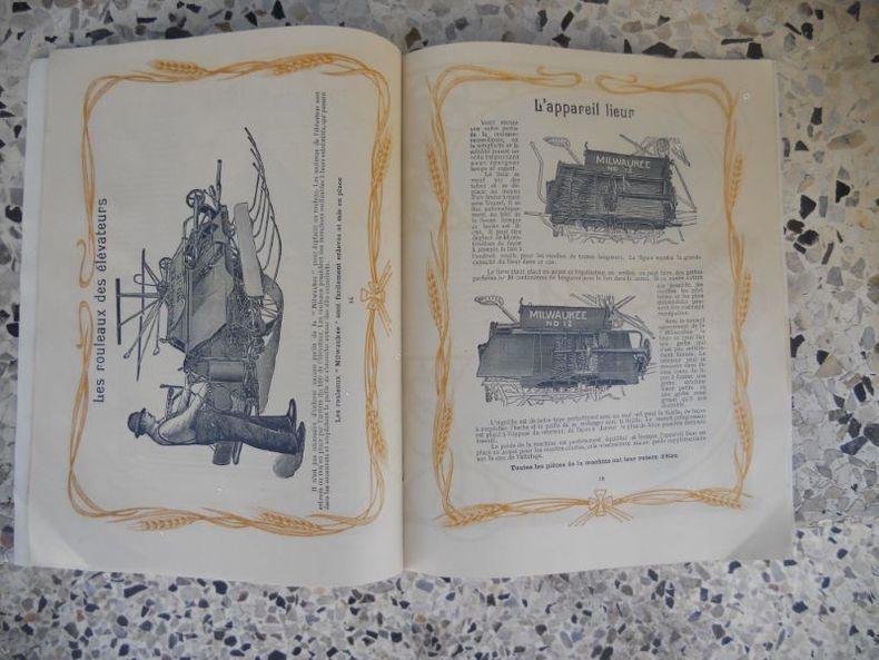 1905 Catalogue en francais de la firme Milwaukee, specialiste de materiel agricole, 1905. Format 19x24 cm, cahier agrafe de 32 pages. Nombreuses illustrations. La couverture ainsi que les deux premieres pages sont tachees (voir la photo). Etat passable.