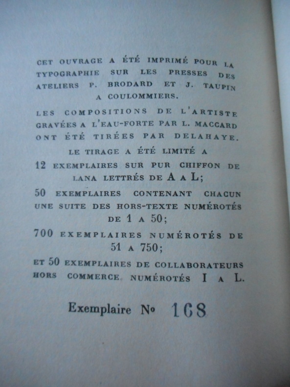Tirage limité à 812 exemplaires numérotés. PHOTOS sur DEMANDE. ...................... Photos sur demande ..........................