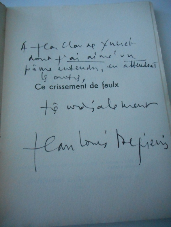 Les Nouveaux Cahiers de Jeunesse a Bordeaux, 1960. Format 14x19 cm, broché, 91 pages. Un des 500 exemplaires sur papier bouffant, agrémenté d'un bel envoi autographe de l'auteur pour le poète Jean-Claude Xuereb. Très bon état.