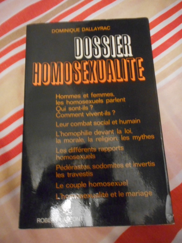 "1968. Paris Editions Robert Laffont 1968 - Broché 16 cm x 24 cm 416 pages - Texte de Dominique Dallayrac en trois parties : Une étude médico-sociale de l'homosexualité ; préliminaires à une sociologie de l'homophilie ; Affrontement en guise de conclusion - Bon état"